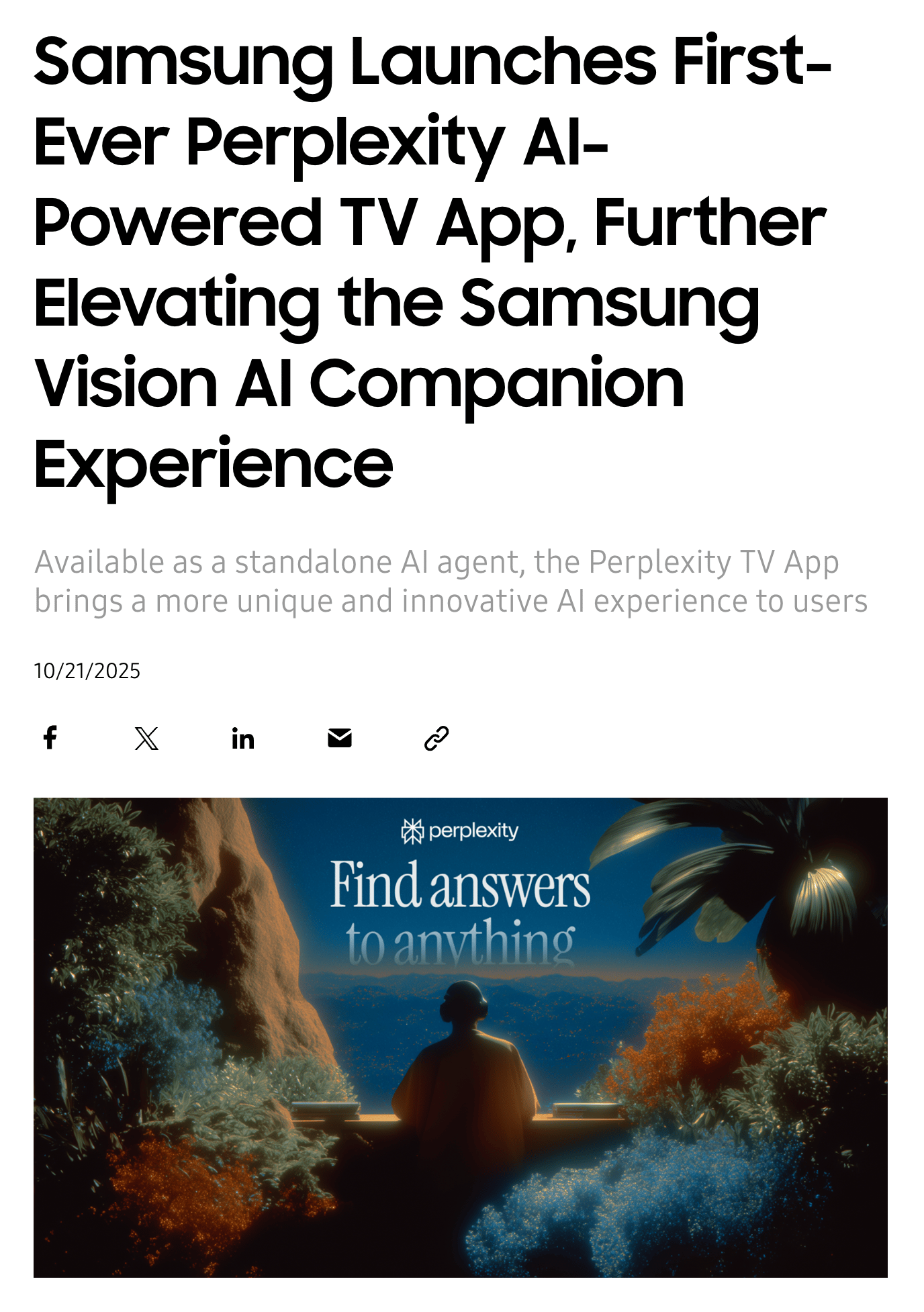 Samsung announced the launch of the Perplexity TV App.